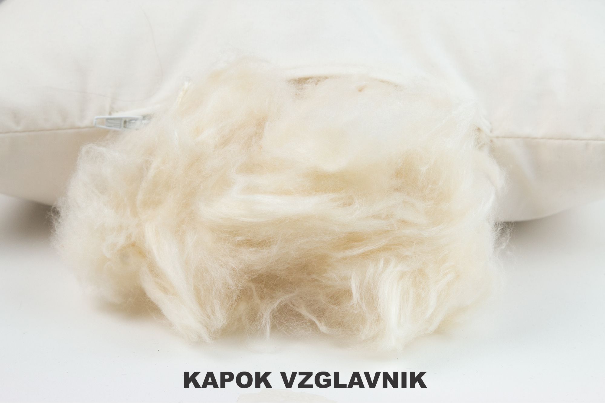 Kapok vzglavniki so polnjeni s kapok vlakni. Gre za izjemno lahka, votla vlakna, ki zadržujejo zrak, nase ne vežejo vlage in ustvarjajo značilen puhast občutek.