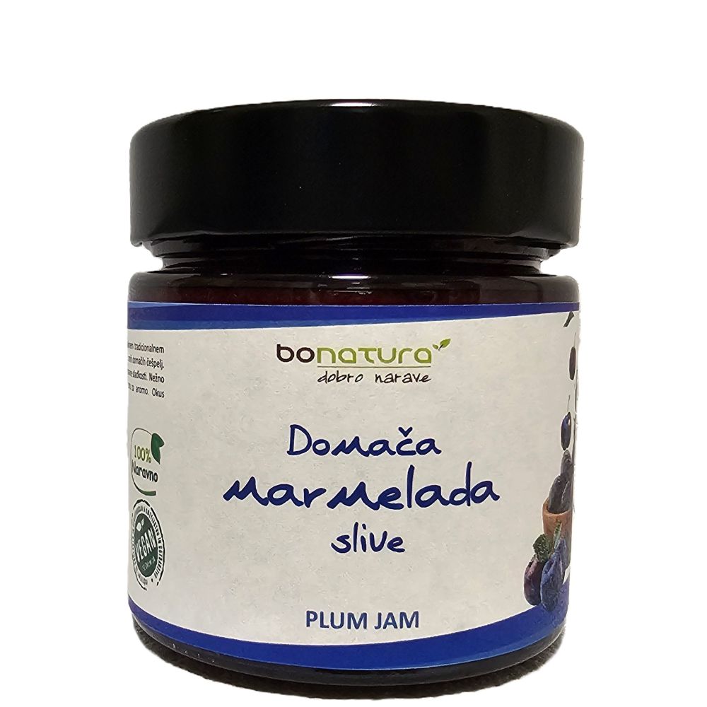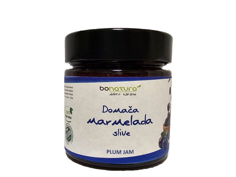 SESTAVINE MARMELADA SLIVA: slive 82%, jabolka 42 %, sladilo: ksilitol 16,6%, pektin (želirno sredstvo) 1,4%, rum.