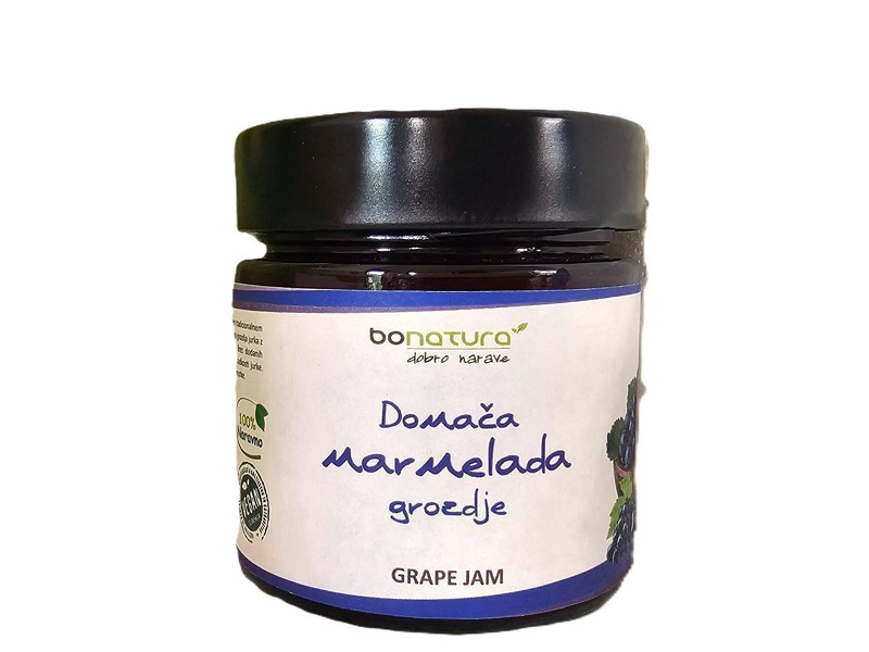 SESTAVINE MARMELADA GROZDJE: grozdje 82%, sladilo: eritritol 16%, pektin 2%.