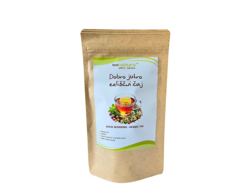 SESTAVINE ČAJ DOBRO JUTRO: materina dušica, meta, citronka, robida, aronija.