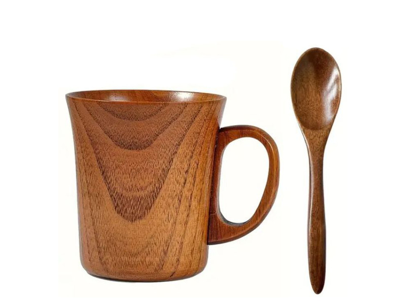 Leseni kozarec z žličko je izdelan iz naravnega lesa, ki se prilagaja vsebini in ohranja tekočino poleti dlje časa hladno, pozimi pa toplo. Fino obdelan do gladkosti ter zaščiten z naravnimi materiali, kot sta čebelji vosek in laneno olje, zagotavlja obstojnost in podaljšano vodoodpornost, brez uporabe strupenih kemikalij. V lesu se prelivajo topli rjavi toni, zaradi česar je vsak kos unikaten in prijetno topel na dotik – popolna kombinacija naravne lepote in funkcionalnosti.
