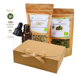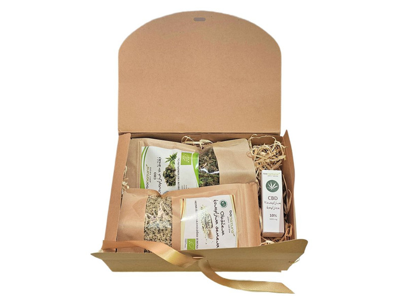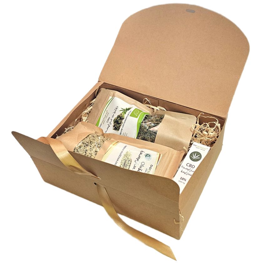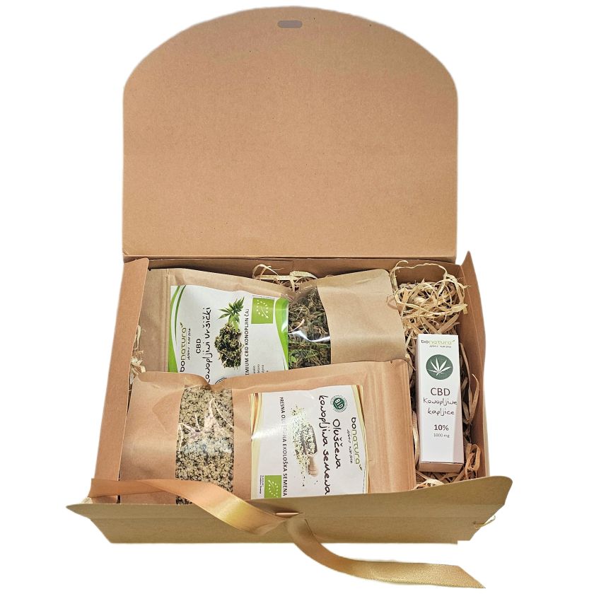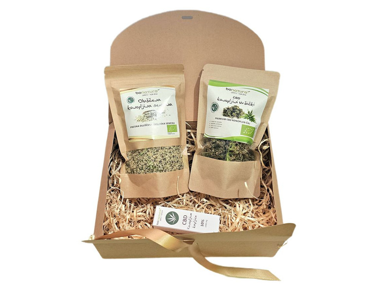 Darilni set združuje naravne blagodejne lastnosti konoplje v treh izdelkih: CBD konopljine kapljice za notranje ravnovesje, oluščena konopljina semena kot hranljiv prigrizek ter CBD konopljin čaj za umirjajoč ritual. Skupaj ustvarjajo popolno harmonijo za telo in duha. Podarite si ali svojim bližnjim trenutek sprostitve.
