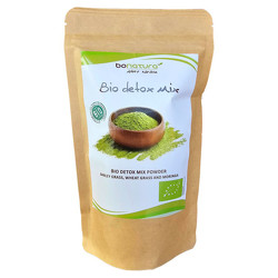 UPORABA: 1-2 čajni žlički zelenega prahu vmešajte v 200 ml vode, sadnega soka ali drugi napitek. Za boljši okus dodajte nekaj kapljic limone ali pomarančni sok. Za pripravo hranljive in bogate mešanice priporočamo, da detox mix kombinirate z agrumi ali zelenjavo. Mešanica je nepogrešljiva v vsakem smutiju. Ob uživanju detox mixa je pomembno, da zaužijete dnevno dovolj tekočine.