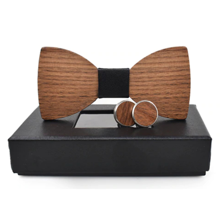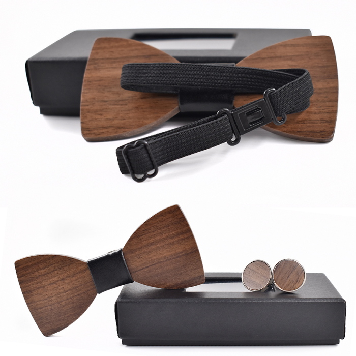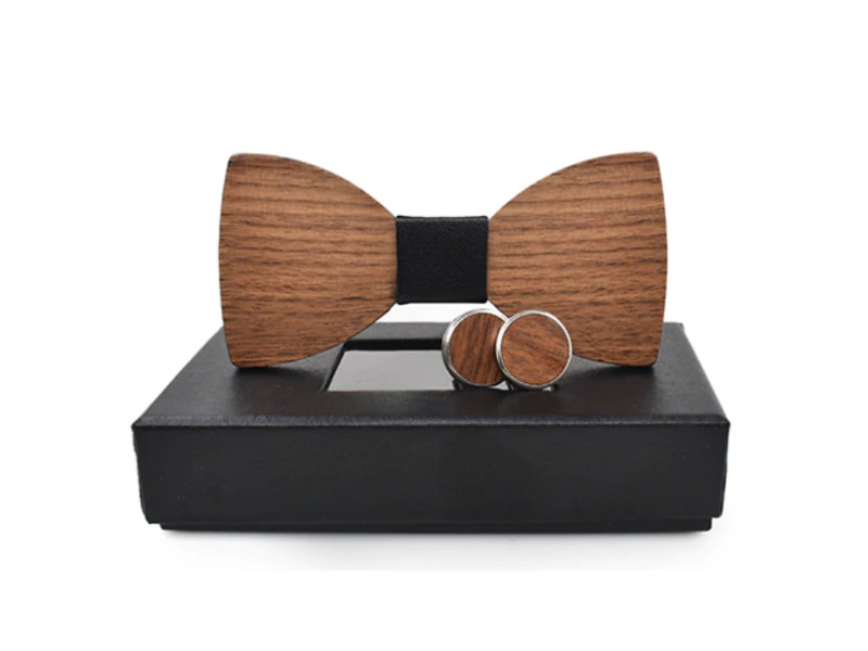 Lesen metuljček je narejen iz 90% naravnega materiala (lesa) in vzorčnega blaga, ki je kot osrednja točka. Opremljen je s trakom in zaponko, ki se lahko regulira glede na velikosti in širino ovratnika.