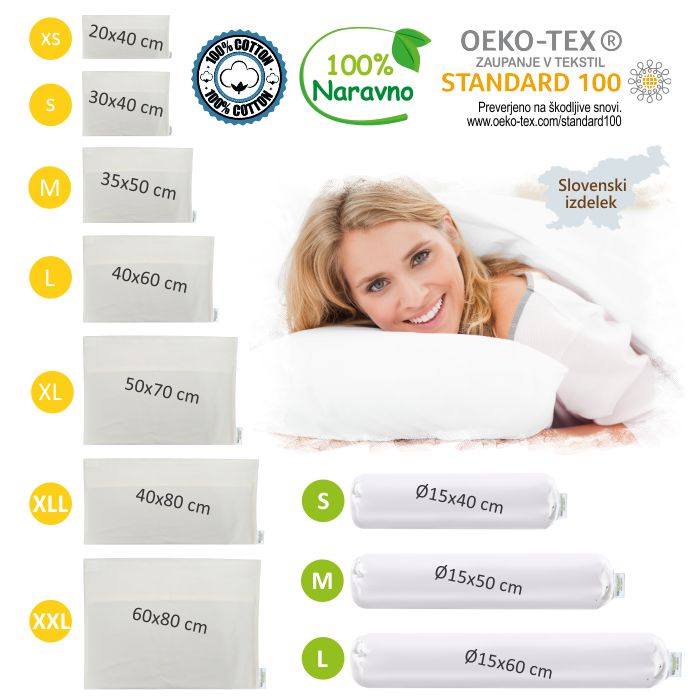 Za pregled vseh dimenzij naravnih vzglavnikov in polnil obiščite NARAVNI VZGLAVNIKI IN POLNILA BONATURA.