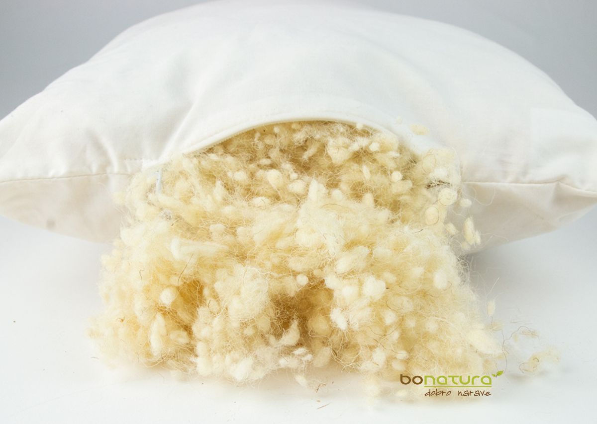 Volneni vzglavnik je polnjen z eko volnenimi kroglicami, ki so danes najbolj kakovostna oblika volnenega polnila.