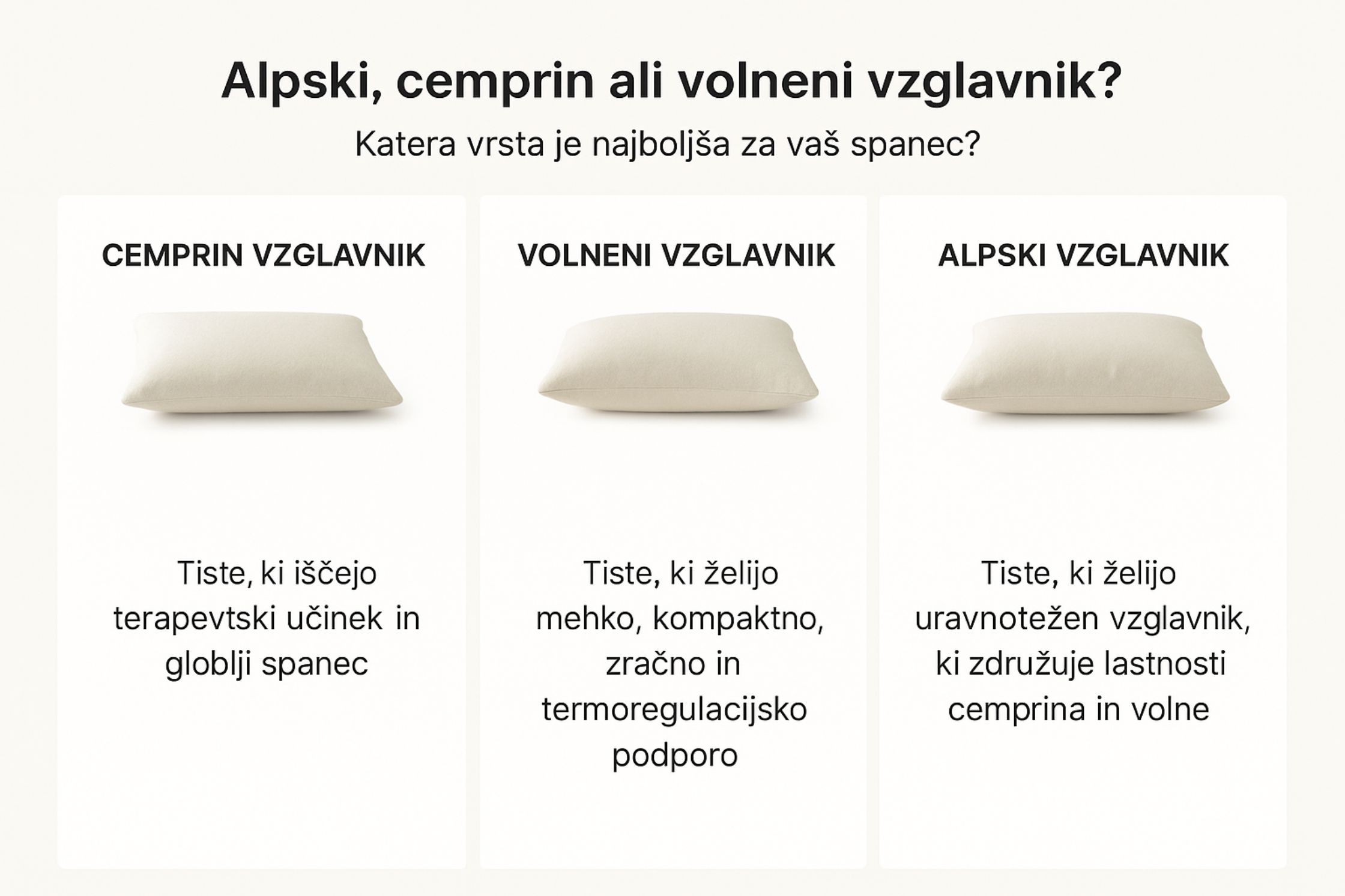 AngleškiIzbrati ALPSKI, CEMPRIN ali VOLNENI VZGLAVNIK?
