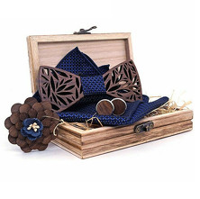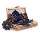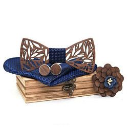 PAKIRANO: leseni metuljček + robček - broška + manšetni gumbi - darilna lesena škatljica