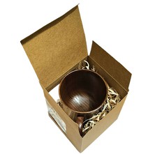Leseni kozarec je fino obdelan do gladkosti. Notranjost in zunaj je končana samo z naravnimi materiali - čebeljim voskom in lanenim oljem za obstojnost in podaljšano vodoodpornost. V lesu se prelivajo rjavi toni. Narejen iz naravnega materiala zaščiten brez strupenih kemikalij. Vsak kozarec je narejen iz različnega dela lesa, zato je vsak kozarec unikaten. V primeru nakupa več kosov kozarec v lahko pride do razlik.