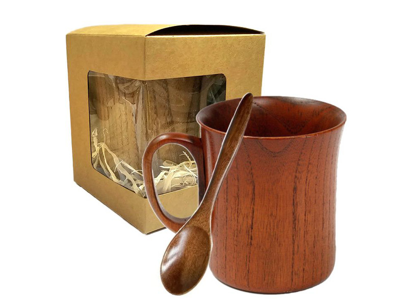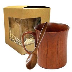 PAKIRANO: Lesni kozarec 250 ml z leseno žličko v darilni embalaži.