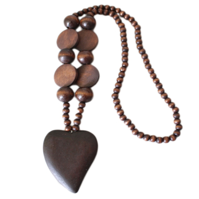Dimenzija ogrlice: srce 7,5x6.0 cm, lesene kroglice 0,8 cm, skupna dolžina 76 cm